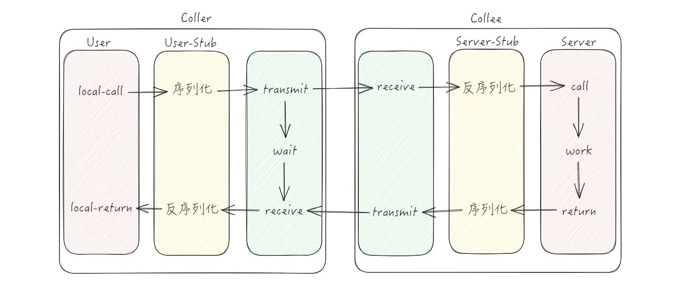 了解了整体的设计之后,RPC两端调用与被调用如下图所示: