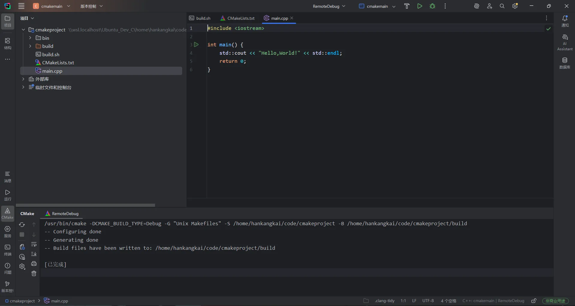 这样我们就可以在Windows环境下,使用CLion进行Linux下的项目开发了。