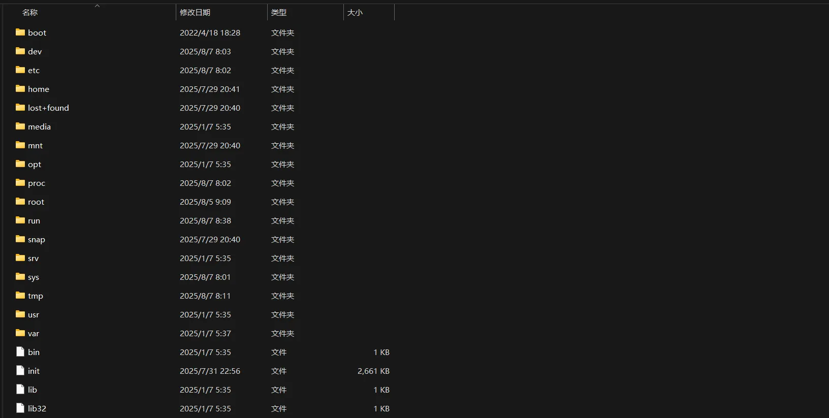点击进入发行版,可以看到一个标准的Linux文件根目录: